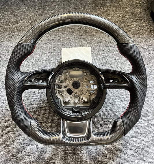 Custom Carbon Fiber Perforated leather Steering Wheel with flat bottom for A6 A7 S7 A8 S8 Trim Included
